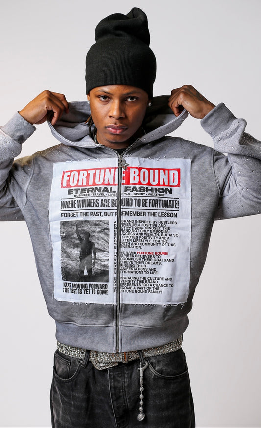 Grey “Eternal Fashion” Rhinestone Zip Up Jackets