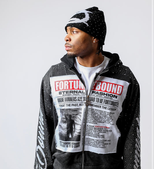 Black “Eternal Fashion” Rhinestone Zip Up Jackets